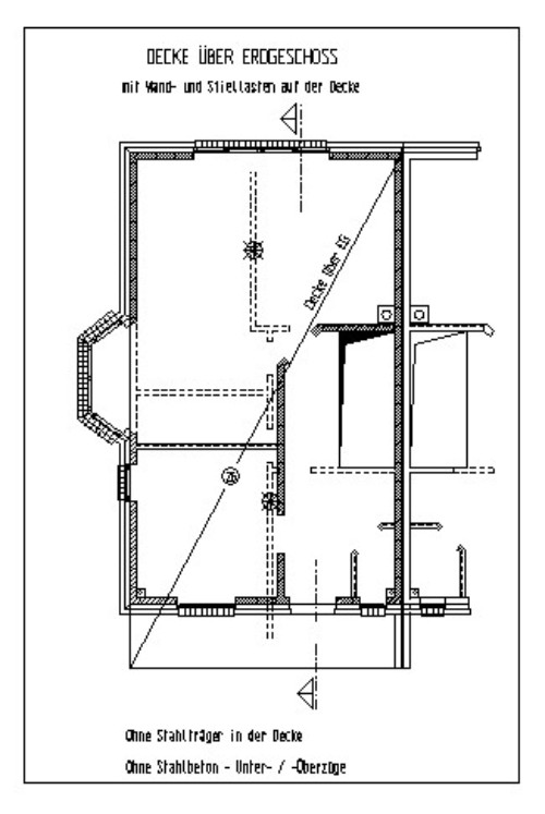 Positionsplan Decke über Erdgeschoss Als Beispiel für die Berechnung von Stahlbetondecken wird hier die Decke über dem Erdgeschoss einer Doppelhaushälfte dargestellt.